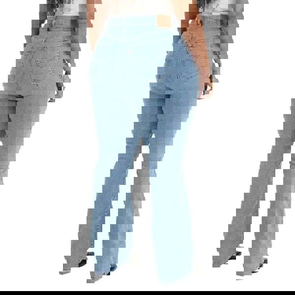 These Levi’s 725 jeans combine a high-rise waist with a bootcut leg in a plain light blue finish. Made from a cotton-rich blend with Tencel, elastomultiester and elastane, the fabric has stretch for ease of movement. A classic five-pocket layout includes two side pockets, two back pockets and a coin pocket.