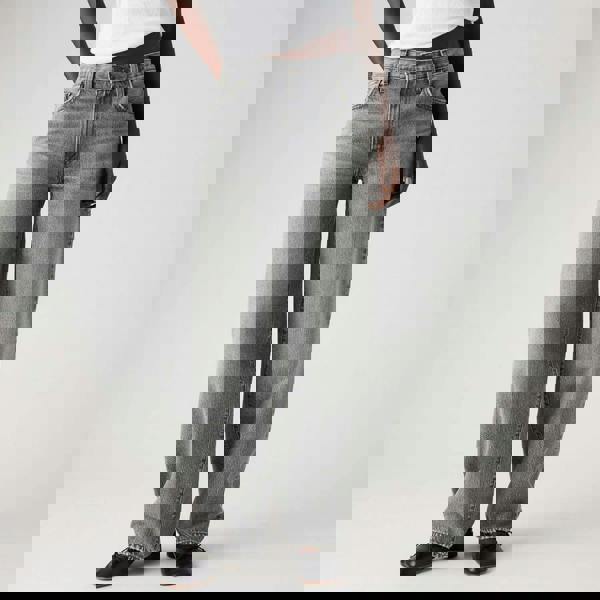 These Levi’s women’s baggy jeans come in grey denim with a mid rise and straight leg. The design combines a plain finish with logo and patch detailing, plus rivet accents. A button fastening and zip fly keep the front clean and structured, while belt loops allow styling with a belt.