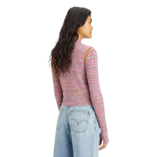Refresh knitwear with the Levis Jupiter sweater top in pink. Made from a viscose and polyester blend, this ribbed style is finished with contrast detailing and a logo for a clean, graphic look. The cropped length pairs easily with high-waisted trousers and skirts, while the mock neck creates a neat, streamlined neckline.