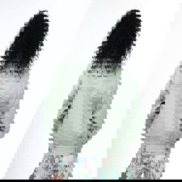 This Levi’s women’s 90’s Trucker Jacket is made from 100% cotton and finished in a plain green design with logo detailing. It has a point collar and long sleeves with buttoned cuffs, keeping the look clean and structured for everyday wear.
