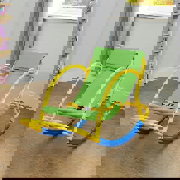 The soothing rocking motion offers sensory support and can help promote calm and emotional regulation. As children learn to rock themselves, it also supports the development of balance, coordination, and muscle control. For comfort and reassurance, it includes a cushioned foam headrest and a click-in safety harness, while the powder-coated steel frame is rust resistant for lasting everyday use.