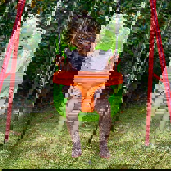 A powder coated steel frame provides a stable base, while the integrated safety harness helps keep your child secure during use. Ground pegs are included to anchor the swing firmly in place, and the design has been tested to relevant safety standards. Supplied flat packed for simple assembly, it’s a practical choice for everyday outdoor play at home.