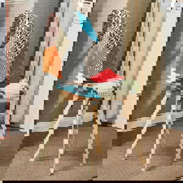 Our Chrono Patchwork Fabric Chair is a proven favorite. Supported with solid wooden legs, sit in comfort around the dining table or cuddle up with your favourite book. The durable and iconic design is eye-catching and will surely make a statement in your home.
