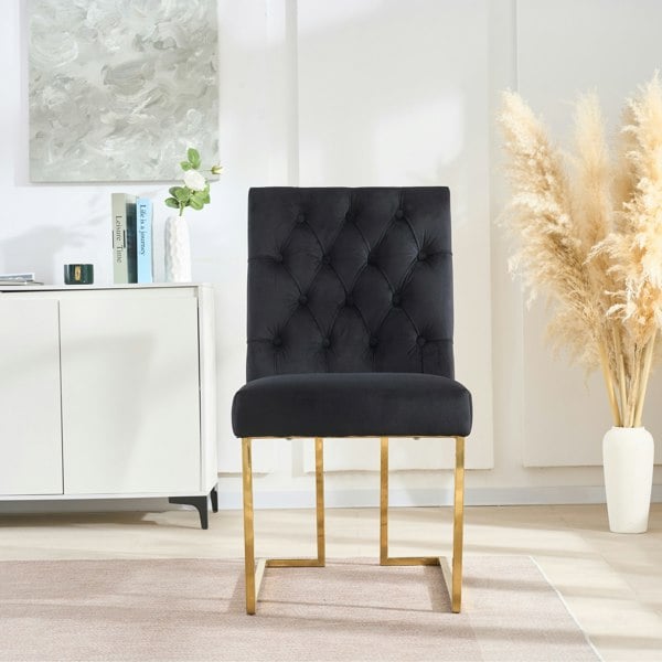 Upgrade your space with this stylish and comfortable tufted velvet dining chair. Wrapped in soft velvet fabric and filled with plush foam cushioning, it offers a luxurious seating experience for any room. The deep button-tufted backrest enhances its elegant look while maintaining a timeless appeal that suits both modern and classic interiors.