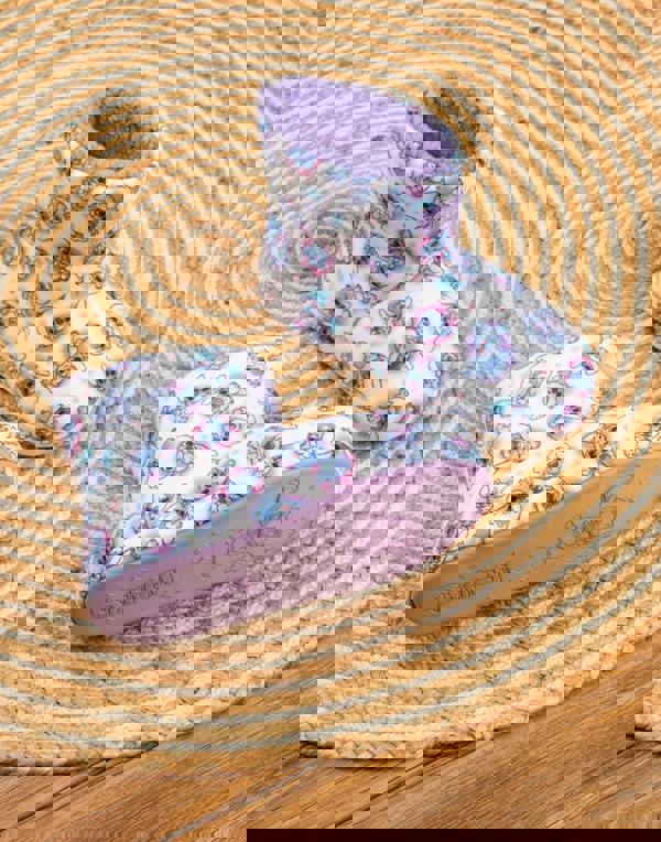 Featuring characters Stitch and Angel, these cozy high-rise slippers showcase a vibrant multicoloured design with a white base accented by purple and blue