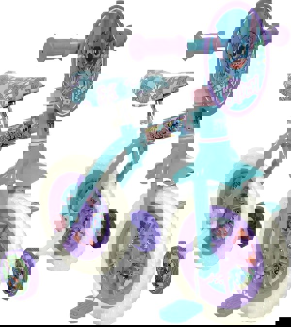 Get ready to embark on a galactic adventure with the Stitch-tacular 2-in-1 10" Training Bike! This bike is simply out of this world, featuring everyone's favourite mischievous alien, Stitch, and a stellar array of colourful graphics. This bike offers two modes of play that are sure to leave little riders over the moon. In stage one, pedal-powered fun awaits as kids zoom around with training wheels, mastering the art of balance and coordination. Then, in stage two, it's time to blast off into the world of balance biking, as the training wheels come off and young adventurers soar through the cosmos with the grace of a shooting star. With puncture-proof tires and adjustable seat and handlebar heights, this bike ensures a smooth and comfortable journey for all little explorers, whether they're cruising through or racing through their own garden. With Stitch by your side, every ride is a stitch-tastic adventure waiting to unfold!