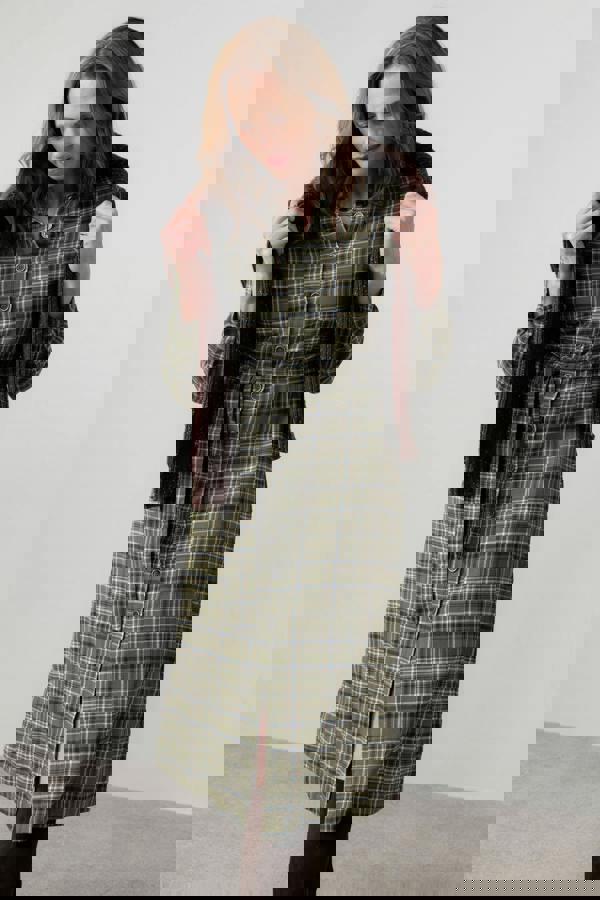 A stylish midi-length checked shirt dress made from soft organic brushed cotton for a warm hand-feel.