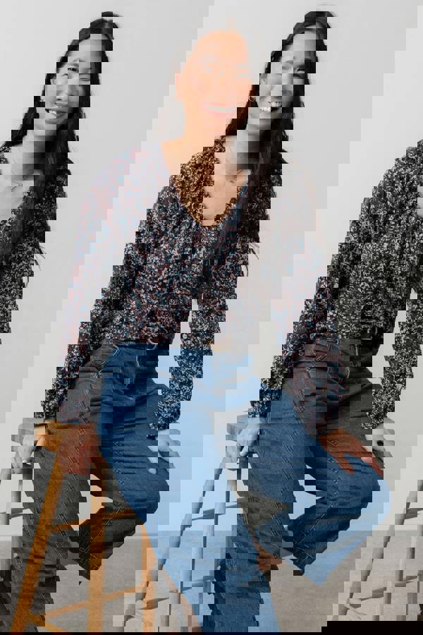 Printed for day-to-evening wear, the Lily & Me Aspen Floral Print V-Neck Jersey Top brings a relaxed silhouette to everyday dressing. Made in Ecovero Lenzing viscose jersey with added stretch, it has a soft drape that works neatly with denim or cord. The Moondream print layers floral stamps and mark-making shapes over a two-colour background to create a collage effect, finished in a chocolate tone.