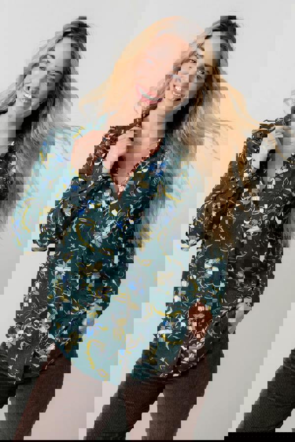 With a bespoke print and made from sustainable Ecovero™ Viscose, offering a beautiful drape. Wear loose over trousers or tucked in to create more shaping. This versatile shirt is perfect for dressing up or down, layering under jumpers or one of our knitted tanks.