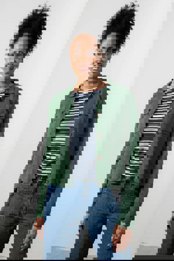 Clean simple lines with a chic boxy shape, the Chestnut spans the gap between cardigan and jacket. Featuring turn up scalloped cuffs, and utility inspired front patch pockets, this boxy jacket has a great winter weight to it.