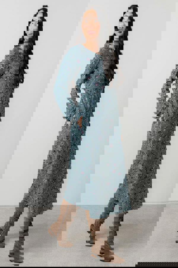 New for the season, the Damson Midi is the perfect easy wearing dress for comfort and style. Lightweight yet warm, made from brushed recycled knit fabric for a soft, cosy hand-feel. The relaxed fit skims the body with a high waist seam and gathered full skirt.