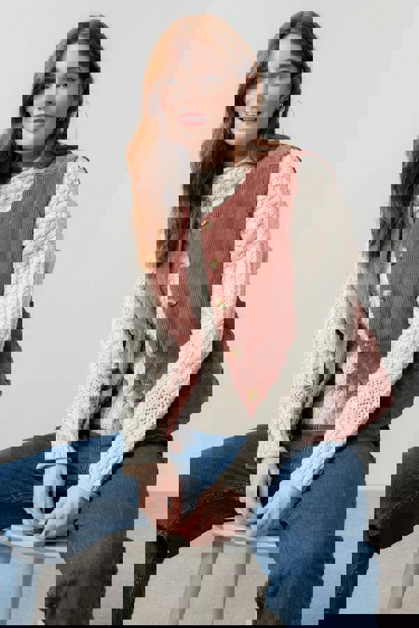 Lily & Me Dusk Stretch Cotton Jumbo Cord Gilet Antique Rose