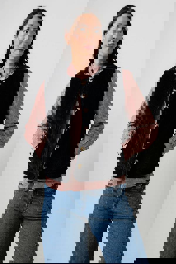Lily & Me Dusk Stretch Cotton Jumbo Cord Gilet Black