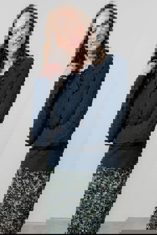 Lily & Me Elise Tie Neck Pointelle Jumper Navy