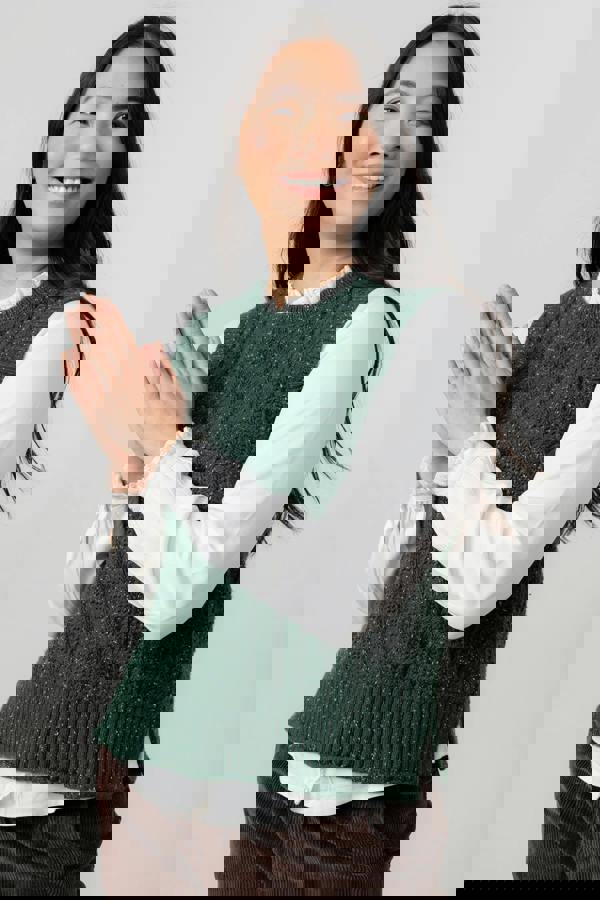 The Eva is a cotton-rich knitted tank in a variety of colourways. Woven from a flecked ‘neppy’ yarn giving it a beautifully soft level of colour.