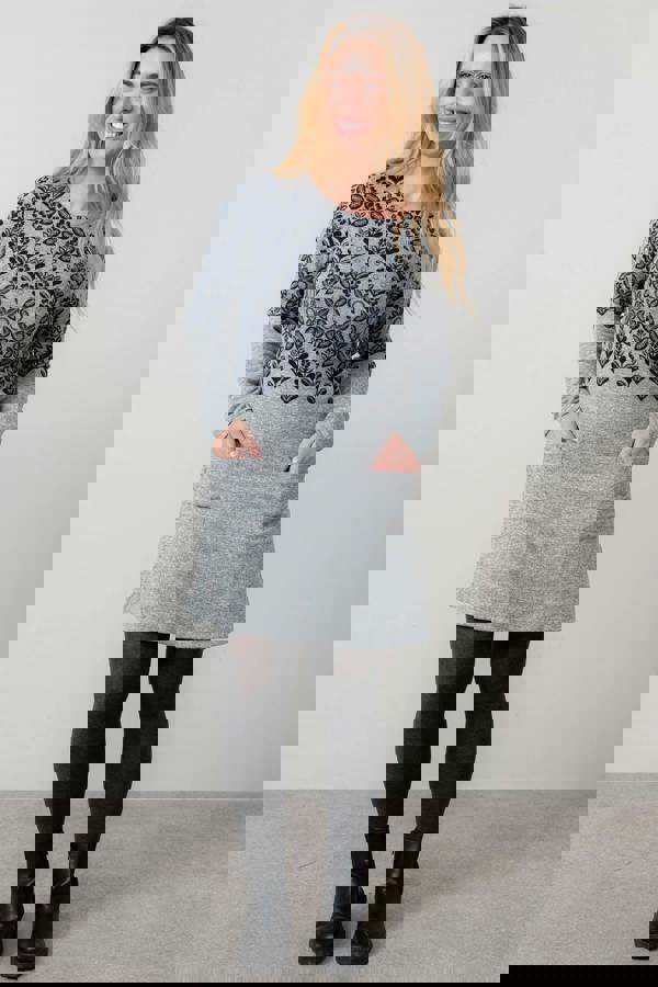 Featuring a bold mono, inspired by a blend of Fair Isle and traditional folk print. An easy pull-on-and-go dress, layer with leggings or tights and boots for this season's perfect weekend outfit.