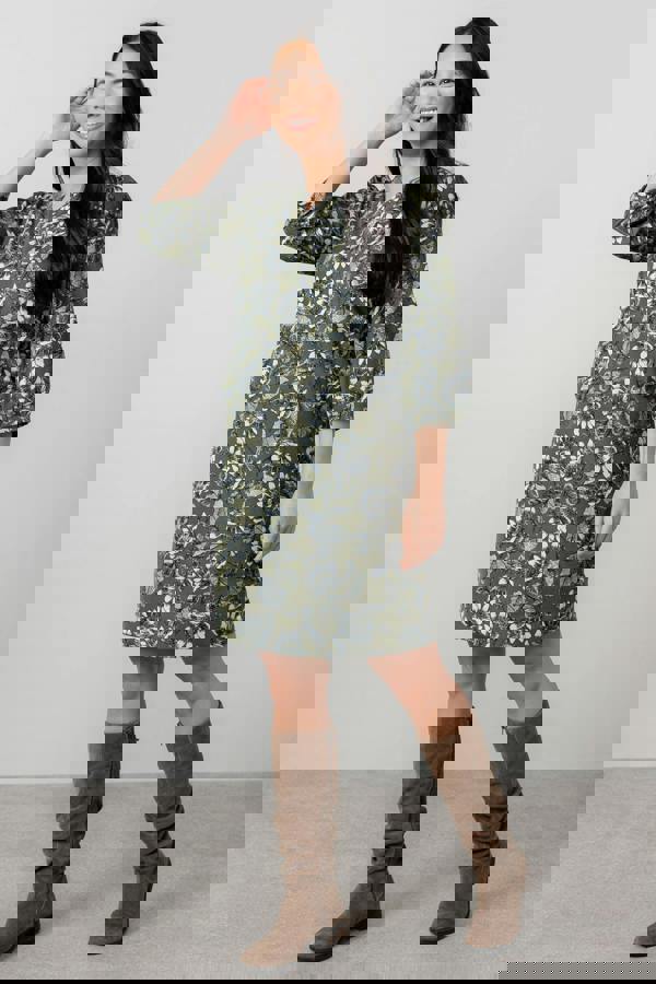 New this season, the Harvest Dress in a bespoke Lily mono bloom print is an easy wearing shift shape. Made from soft drapey cotton pincord, with a mandarin collar, flattering notch neckline and three quarter sleeves.