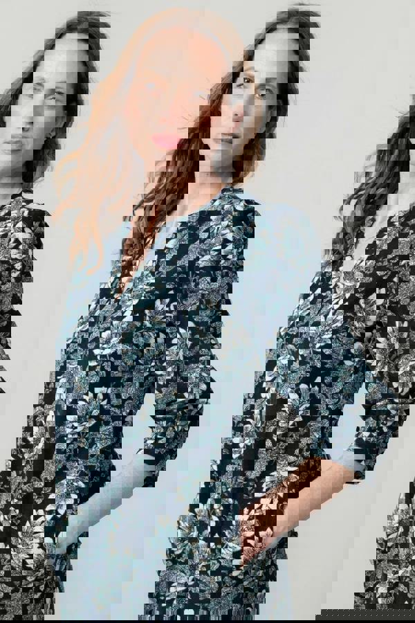 New this season, the Harvest Dress in a bespoke Lily mono bloom print is an easy wearing shift shape. Made from soft drapey cotton pincord, with a mandarin collar, flattering notch neckline and three quarter sleeves.
