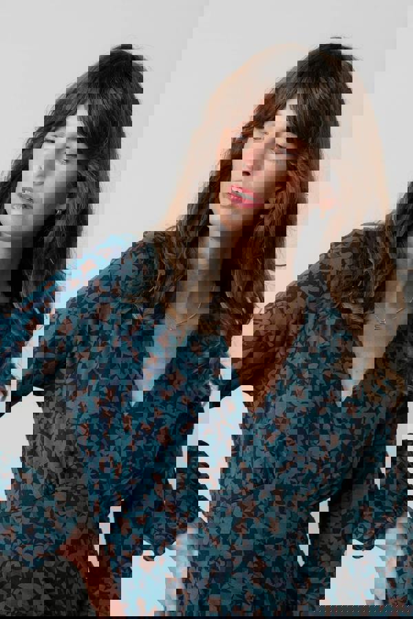 An elevated jersey dress, the Hazel has a cross-over wrap front, soft bell sleeves with gathered cuffs, a curved empire line for a flattering fit and a full skirt.