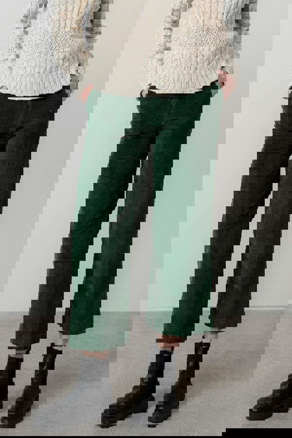 Isla Stretch Jumbo Corduroy Cropped Trousers Pine Green | Lily and Me Clothing