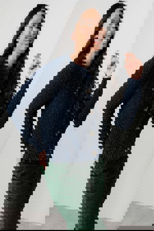 The June is a cotton-rich knitted cardigan available in a variety of colourways. Woven from a flecked ‘neppy’ yarn giving it a beautifully soft level of colour.