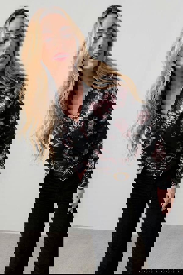 Romantic detailing sets the tone of the Lily & Me Kit Ruffle Satin Blouse, finished in the Imogen print. A ruffle neckline is echoed by ruffle trims over the concealed button placket, while long sleeves are completed with shirred cuffs and scalloped edging for a neat, decorative finish.