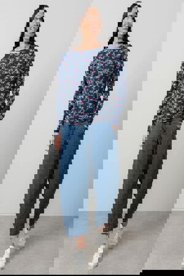 Soft stretch jersey brings an easy, everyday feel to the Lily & Me Monica Floral Print Jersey Top. Finished in a navy foliage print with softly painted leaf motifs, it adds pattern to casual outfits and works well for layering.