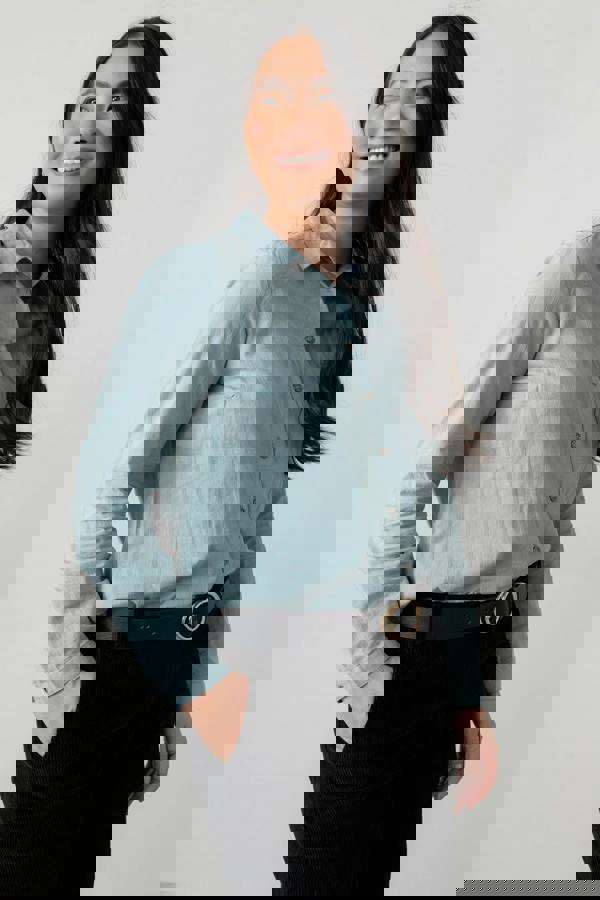 A classic style shirt in sustainable organic cotton. With traditional collar and cuffs, tailored for a feminine look. With a self check texture, the Patsy adds interest to any outift.