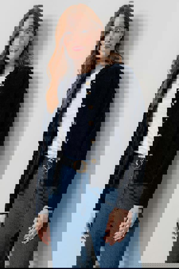 Rene Stretch Jumbo Cord Jacket Navy | Lily and Me Clothing