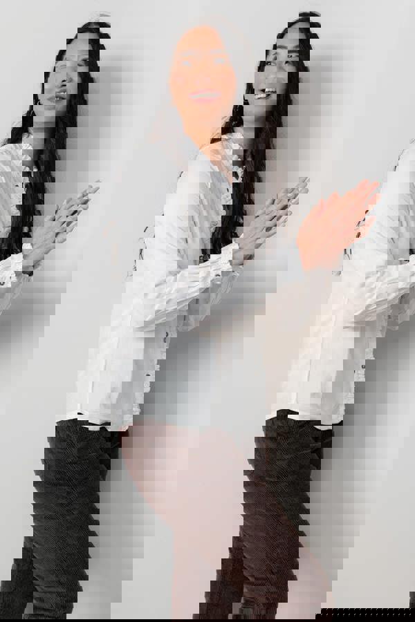 Broderie detailing brings a refined finish to the Lily & Me Sage Frill Blouse, a feminine style with a scalloped neckline and a frilled mandarin collar. Trim continues along the button placket edge and at the cuffs, creating a considered look that works neatly for everyday wear and smart-casual plans.