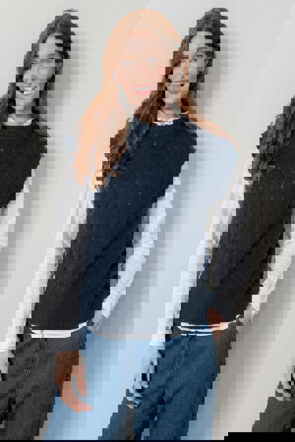 Lily & Me Wallace Pointelle Knit Tank Navy
