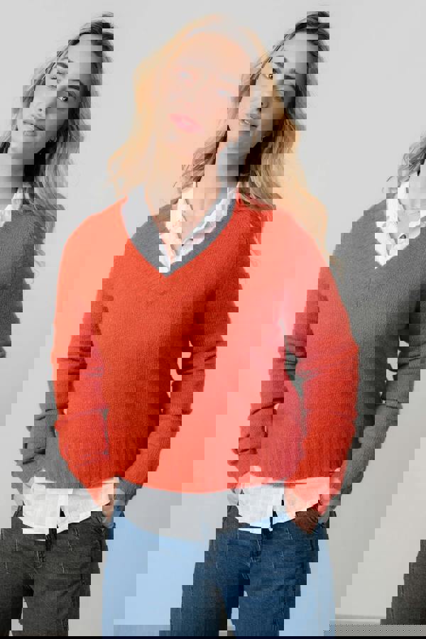 Lily & Me Woodchester V-Neck Boxy Knit Jumper Red