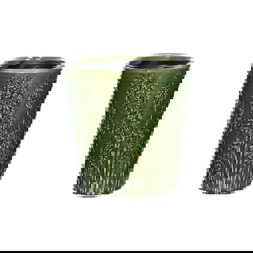 Bring the whimsical charm of a British summer meadow into your home with this exquisite ceramic planter. Finished in a rich, verdant green glaze, this pot is adorned with a beautifully intricate embossed pattern. Delicate wildflower seed heads, reminiscent of alliums, stand tall alongside charming dragonfly motifs, creating a piece that is not just a planter, but a celebration of nature itself. Simply place your favourite houseplant in its nursery pot directly inside for an instant and elegant upgrade. It's the perfect home for your foliage, blending artistic detail with everyday functionality. Plant not included. No drainage holes.