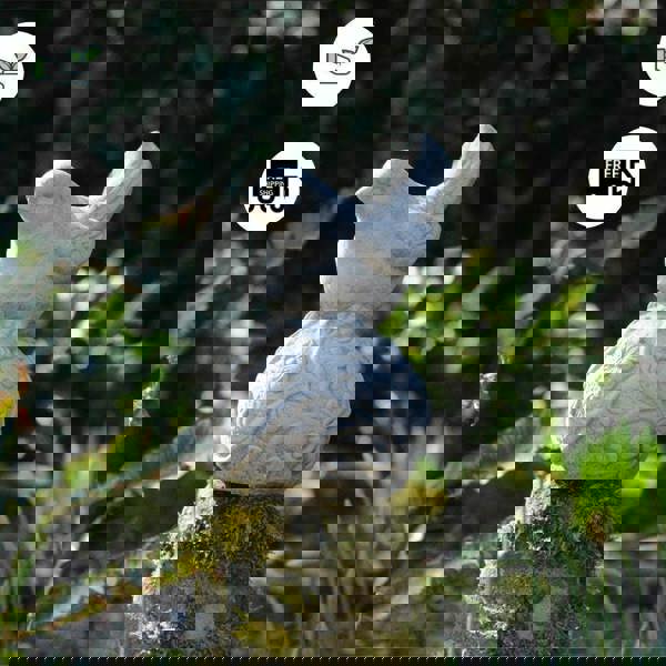A small and extremely cute stone cast sparrow statue will add to your fairy garden design charisma and personality. This stone bird figurine would nicely adorn your garden area. Ideal for Christmas decoration and be a pretty and decorative gift. Team this bird looking forward with the bird looking up to make a very happy couple.