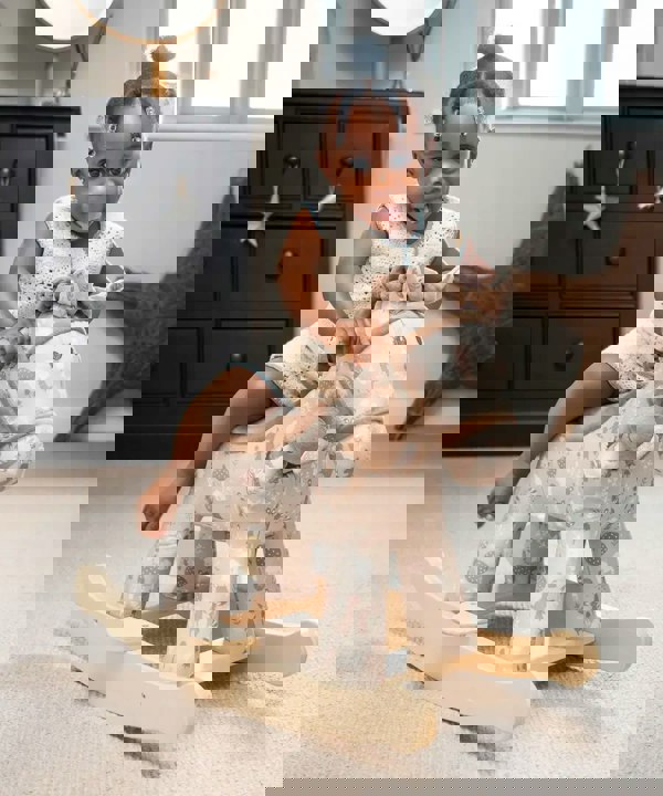 Perched on a sturdy wooden rocking base, Biscuit & Skip Baby Rocking Horse delights in letting his feet go clip-pity clop! His stylish printed body, featuring a neutral colour palette, effortlessly complements any home interior. If you’re looking for rocking horses for 1 year olds, look no further!