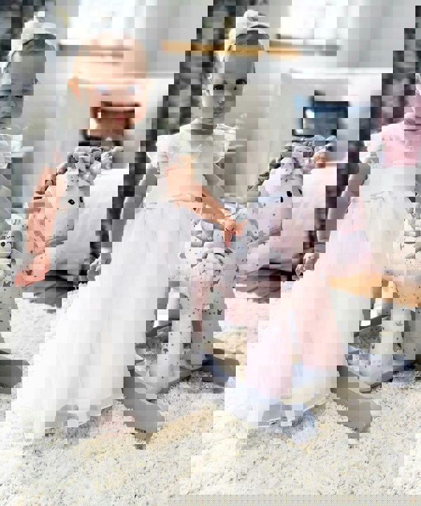 Celeste & Fae Rocking Unicorn is a beautiful pink unicorn rocking horse, featuring an exquisite starry printed fabric body in delicate shades of pink and grey, and a super soft chenille mane, tail, and saddle. Little ones will love taking Celeste on adventures since it can't be denied that she's the prettiest rocking unicorn around!