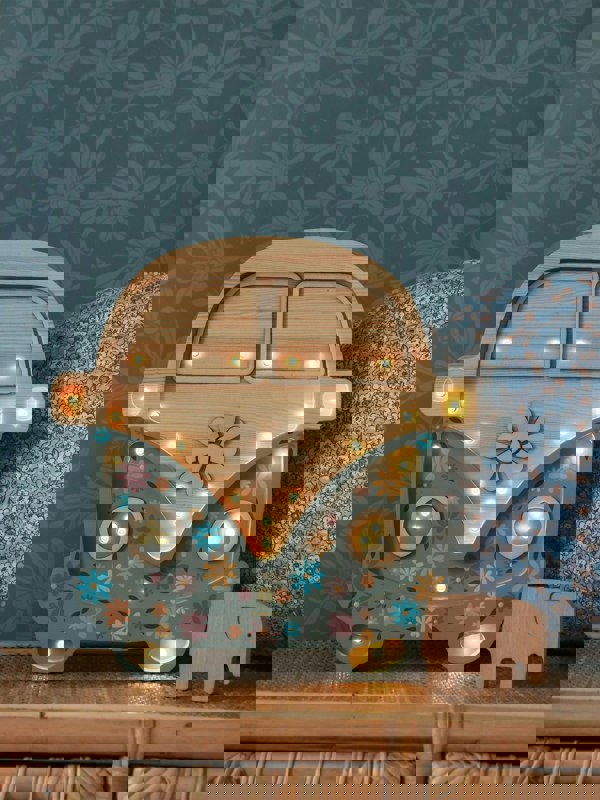 The Little Lights Van Lamp in Blue is a decorative lamp designed in a charming van shape, finished in a soothing blue hue. Created to blend aesthetics with everyday practicality, it makes a distinctive addition to a bedroom setting while keeping the look timeless and easy to style.