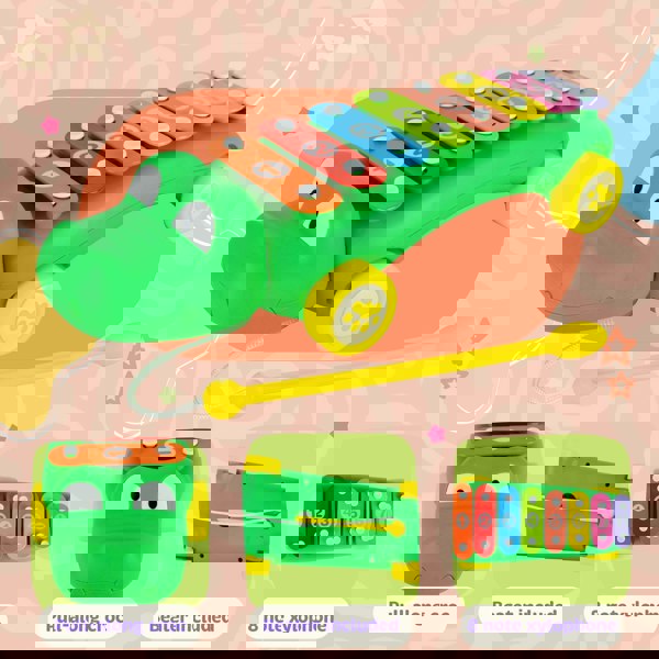Vibrant Design: The xylophone is shaped like a friendly crocodile, complete with bright colours and a charming smile, designed to captivate your child's imagination.