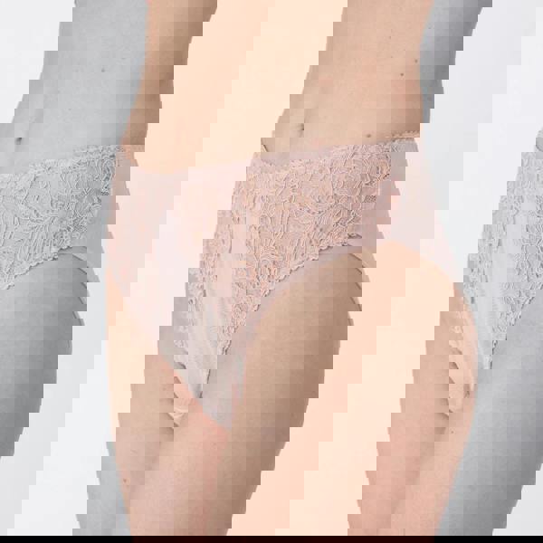 Discover our Ultimately You brief, featuring luxurious pink lace and double mesh for a no VPL finish, plus a soft cotton gusset for superior comfort.
