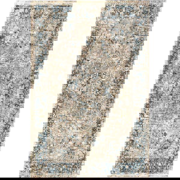 Livabliss Mirabel-Vintage Brown Blue Traditional Boho Fringe Rug