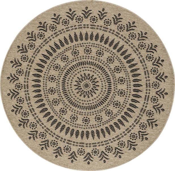 Livabliss Round Encore-Cottage Tan Black Beige Brown In- & Outdoor Rug