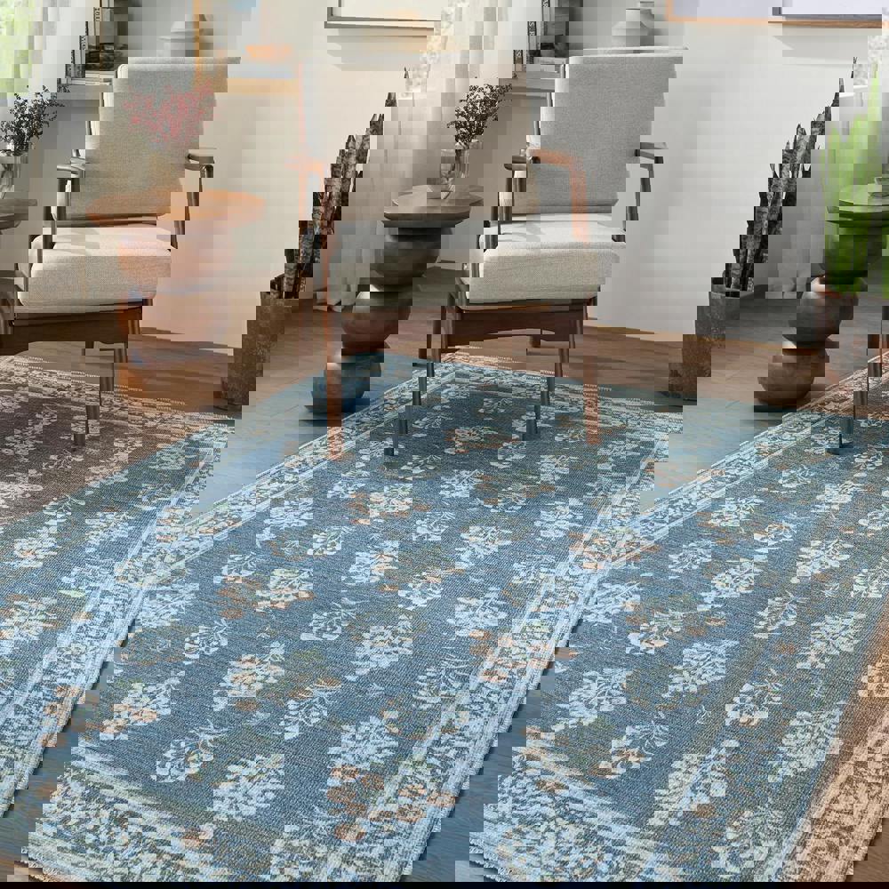 Livabliss Thistle-Washable Blue Green Beige Modern Floral Rug