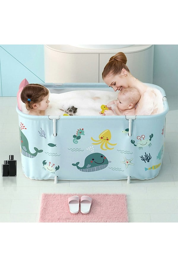 Made from environment-friendly and durable PVC material, the bathtub is safe and spacious enough for adults and children.