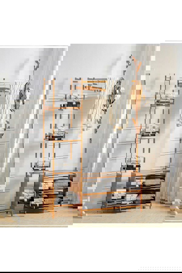 Living and Home 162CM Bamboo Clothes Garment Rack with Storage Shelves Bedroom Classic Style