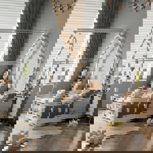 Whether it's planning their next adventure or nodding off to sleep, we are certain your little one will love the playhouse bed frame by Livingandhome. A good rest is essential for every kid to grow healthily. And when it comes to choosing the right bed, our pine wood house bed is an awesome choice that you can't miss. With a unique yet playful design, this bed can easily transform any bedroom into a world of fun and games whilst still offering a cosy place to sleep at night. Its low-bed design is just right for younger kids to get in and out easily, plus the fence-like rails, you don't have to worry about your kid's safety. Constructed with a solid pine frame and finished with a clean white or grey lacquer, the play house bed can easily fit into a wide range of bedroom interiors