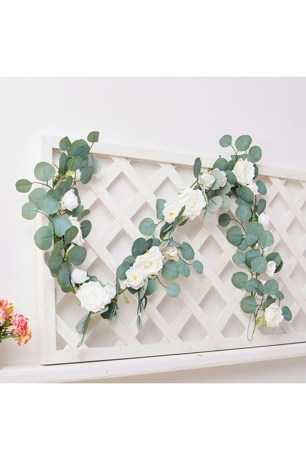 Bring the outside in with our Livingandhome artificial eucalyptus and white rose garland. The green wedding garland is the perfect addition to your wedding when trying to create a natural, beautiful setting. The gorgeous artificial rose garland will look stunning draped along doors, windows and can even be used as centre pieces on tables.