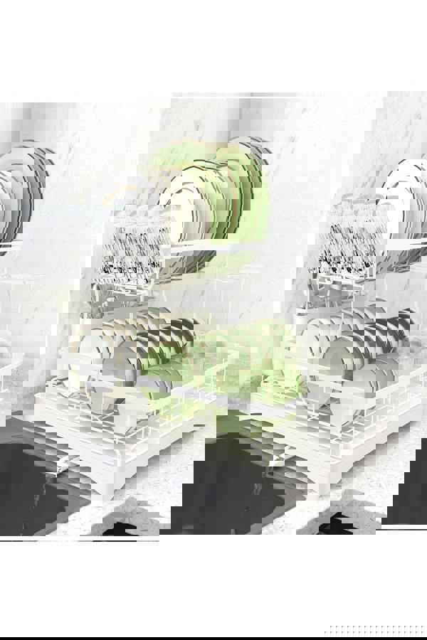 Make the most of your kitchen space with this Living and home 2-tier dish rack. The dish drying rack is made of high-quality carbon steel, and the surface is coated with high-end coating technology, which is sturdy, durable and easy to clean. The surface coating makes the tableware rust-proof and corrosion-resistant for long-term use.