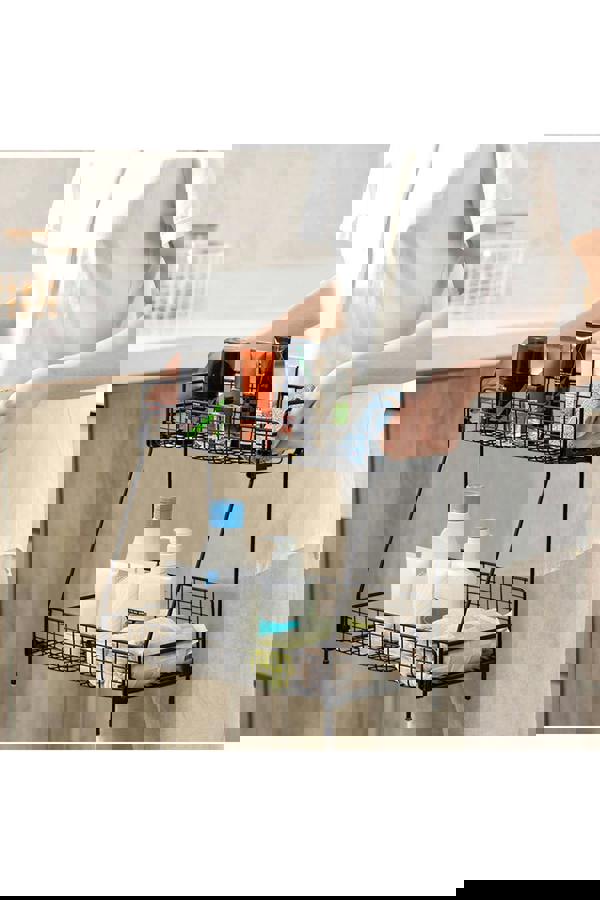 The storage rack is made of premium metal material, and the full powder coating can effectively prevent water and rust, which is very suitable for the bedroom to organize cosmetics,for the kitchen,spices and other cooking ingredients.