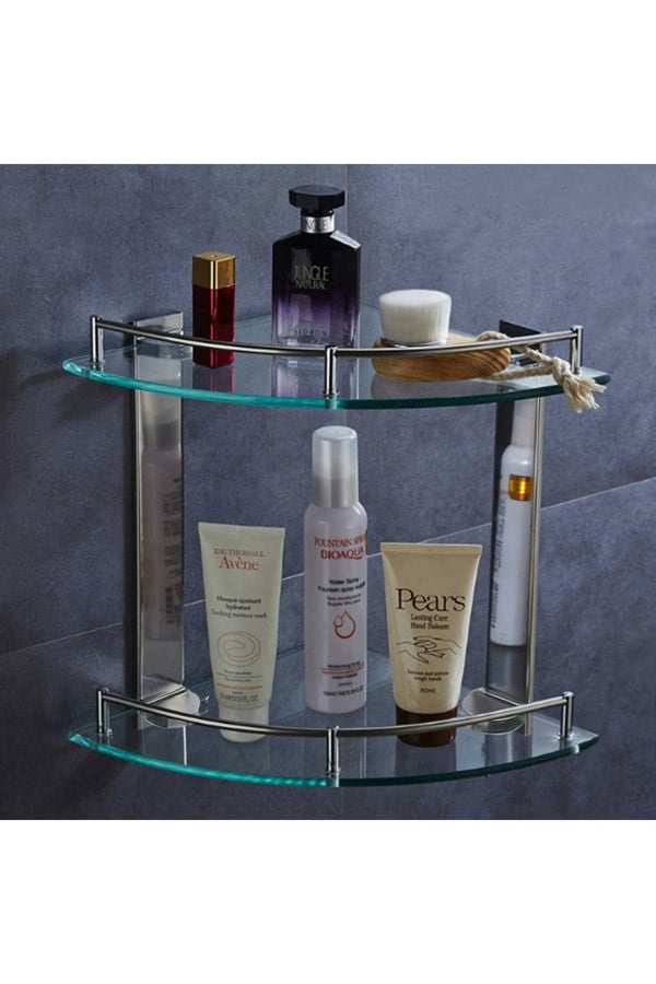 A neat and contemporary solution to adding more storage to any room of the home, this corner shelf has a fashionable design. This glass corner shelf is made of strong, durable, and anti-rust stainless steel to ensure durability and longevity. Extra-thick tempered glass is safe to use, especially for children. Compact size and ample storage space, rails protect your items from falling off the shelf easily.