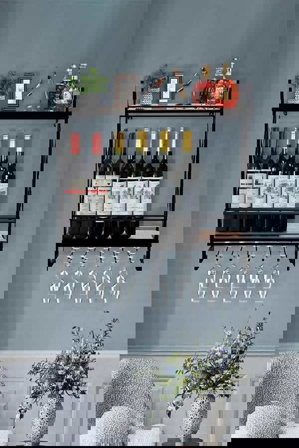 Livingandhome wall-mounted industrial hanging wine glass rack is a perfect solution to put up the vulnerable wine glass, and mugs in your home. The industrial iron frame makes it more durable and stable, there will be no more worry about your wine glass and mugs falling from this rack. Two layers are made of natural wood, providing a classic sense to your home. What's more, with these two layers, this wine glass shelf gives you plenty of room to store wine, vases, books, and other accessories.